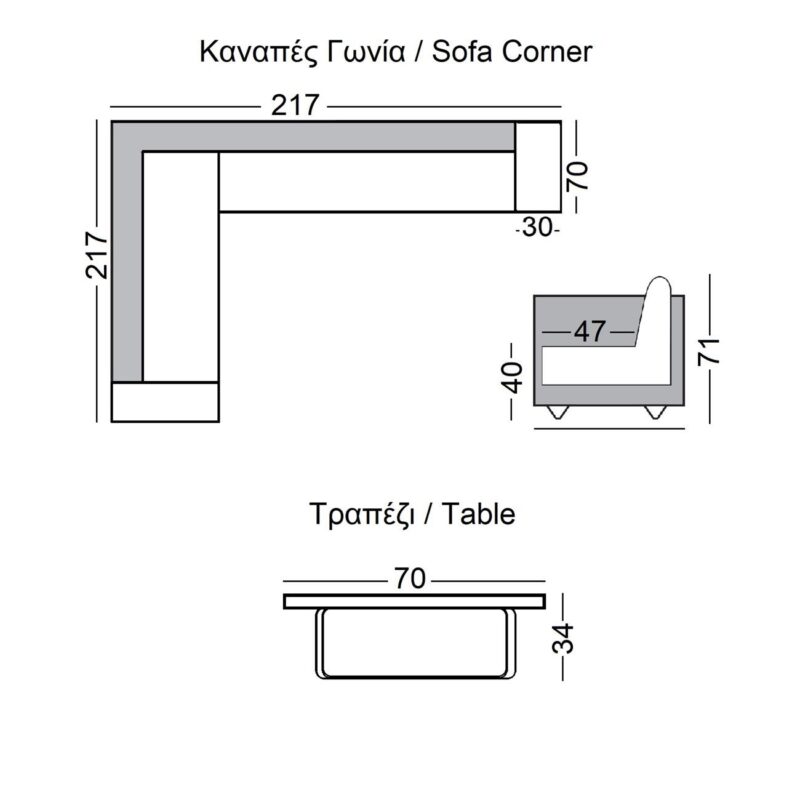 Комплект MEXICO (Ъглов диван + Маса) Alu Антрацит/Възглавници Сиви