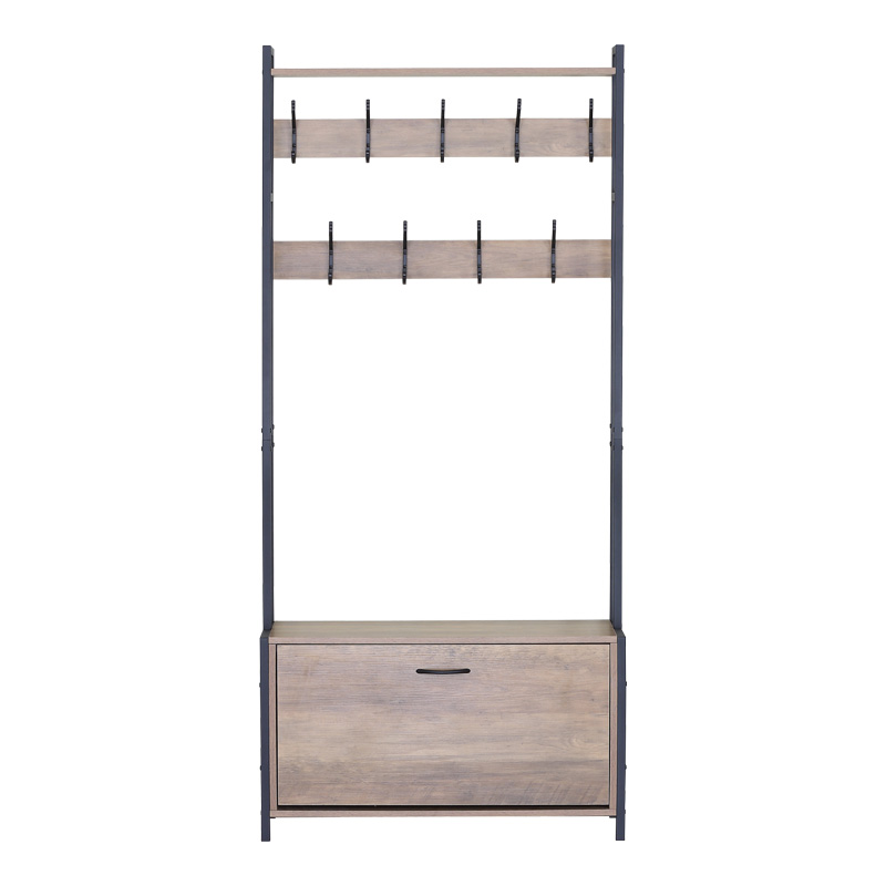 Съчетава закачалка, шкаф за обувки и практична пейка