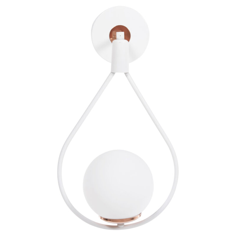 Модерен дизайн, наподобяващ висяща “капка” с бял стъклен глобус