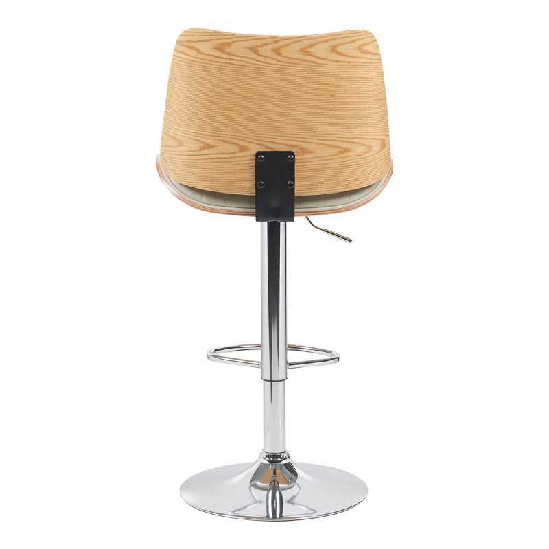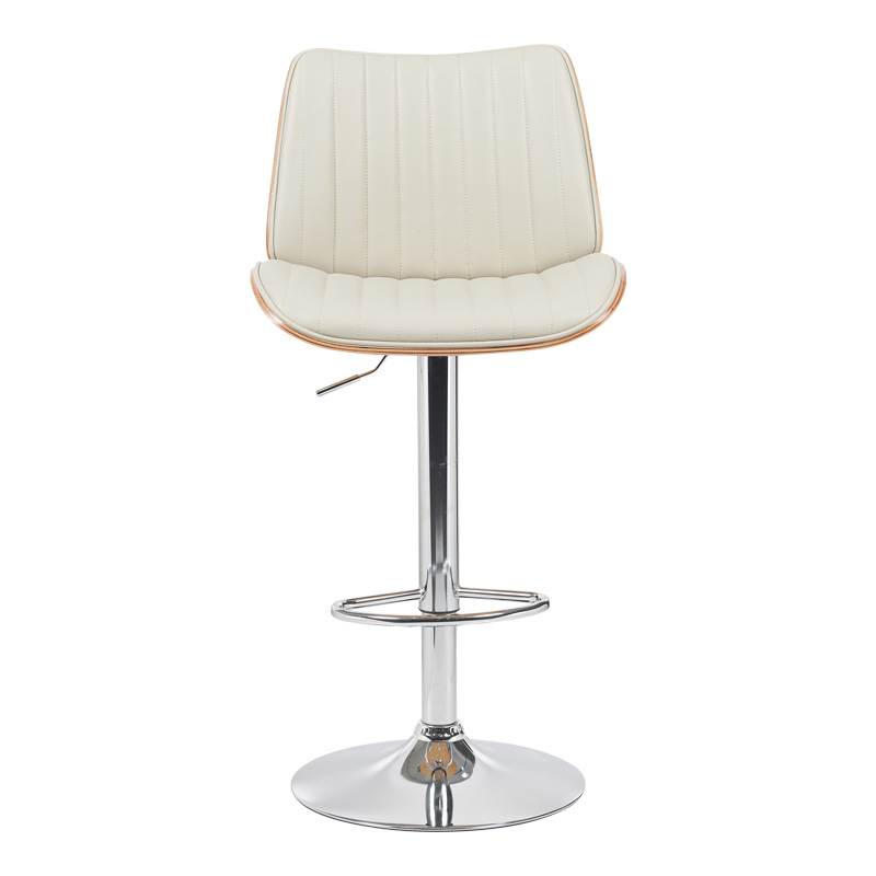 Детайли от висококачествен шперплат със сиво покритие, тапицерия от издръжлива бежова PU кожа, хромирана метална рамка