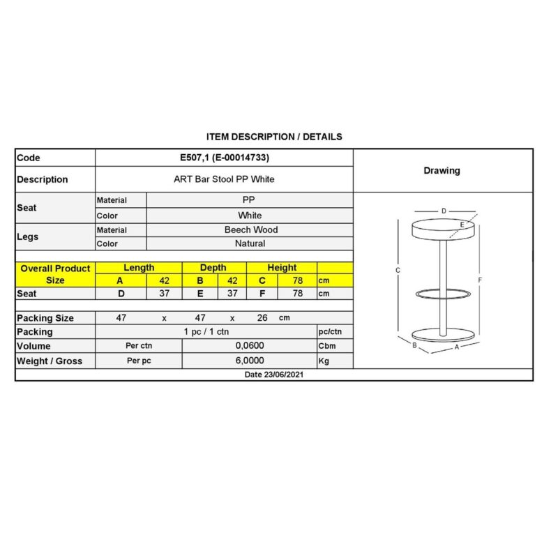Бар стол, ART OΕ-00014733, Бял, Дърво, 37х37х78см.