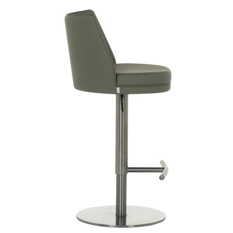 Бар стол KARIBA предлага изключителен комфорт и модерен стил с еко кожа и свеж зелен акцент, идеален за домашни и професионални пространства. Стабилната основа от полирана неръждаема стомана и функцията за 360-градусово въртене осигуряват удобство и дълготрайност. Регулируемата височина и товароносимост до 120 кг гарантират перфектно съчетание на качество и функционалност.