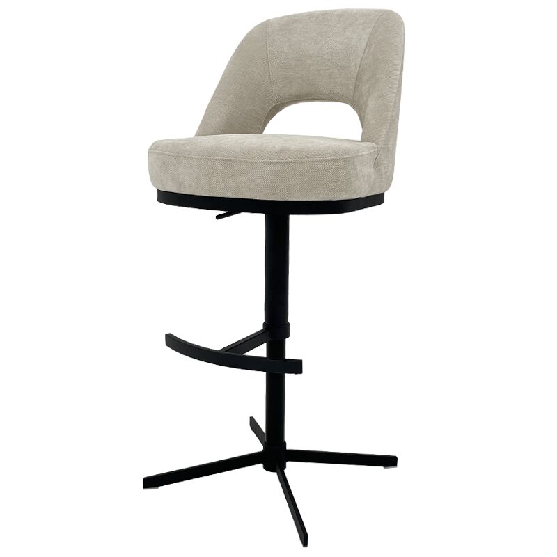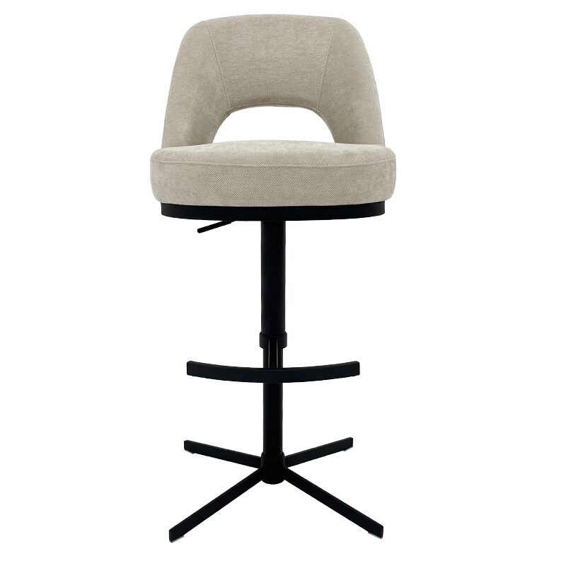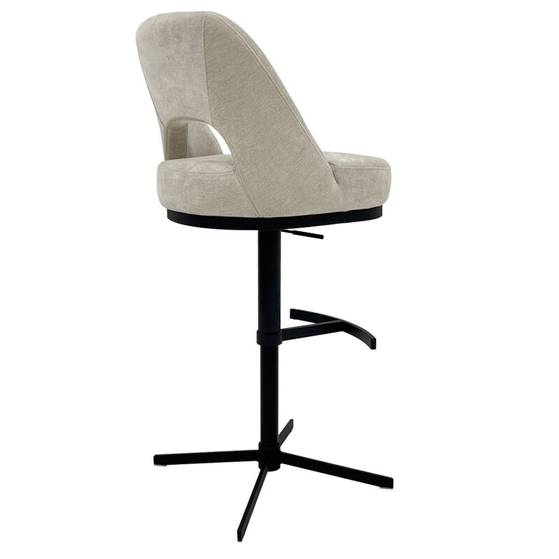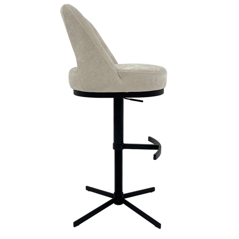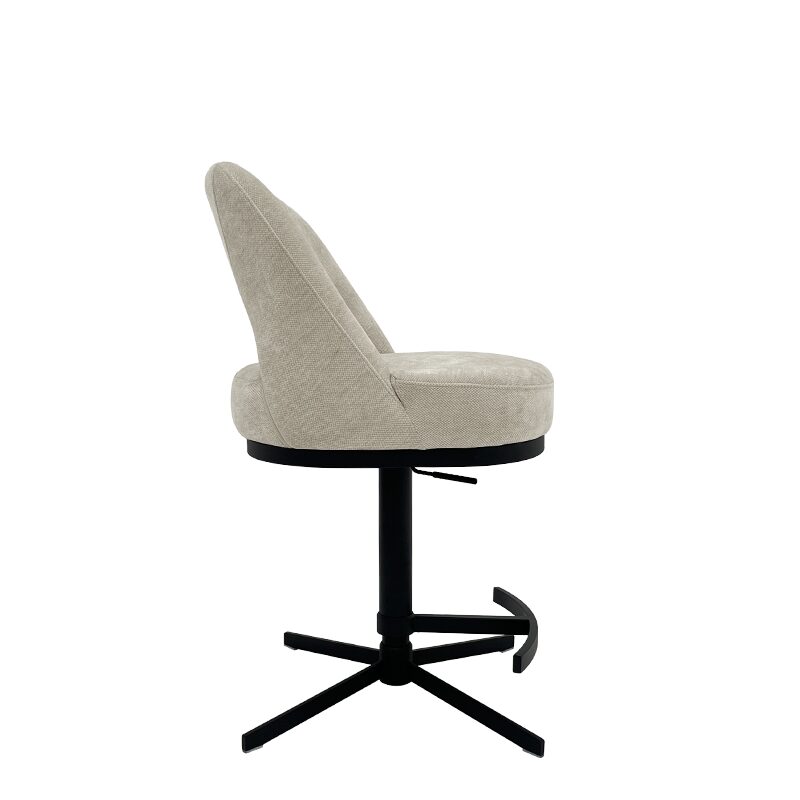 Бар стол KUNDA предлага ненадминат комфорт и изискан стил, идеален за всяка съвременна кухня или бар плот. Седалката с покет пружини и меката дамаска осигуряват деликатна подкрепа, докато праховобоядисаната метална основа гарантира стабилност. Въртящият се на 360° механизъм и регулируемата височина допринасят за персонализирано удобство. Перфектен избор за създаване на модерен и уютен интериор.
