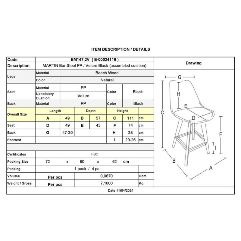 Бар стол EM147,2V MARTIN – ЧЕРЕН
