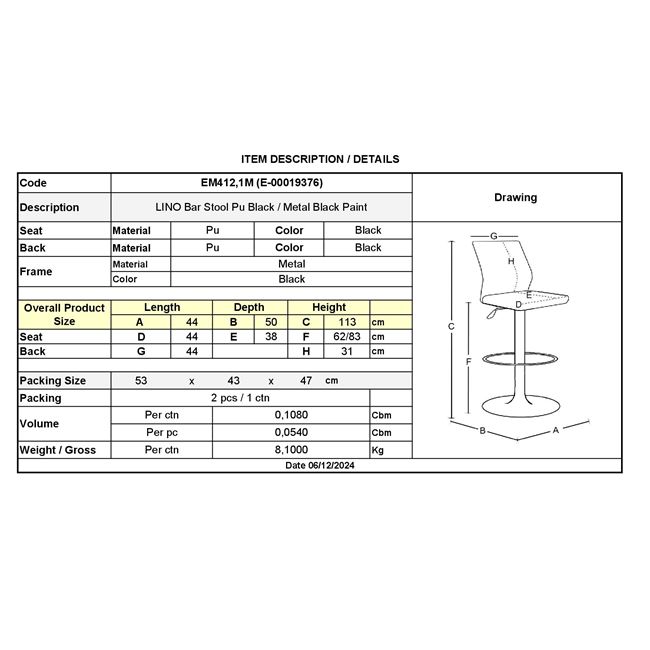 Метална рамка с черно покритие, седалка от полиуретан