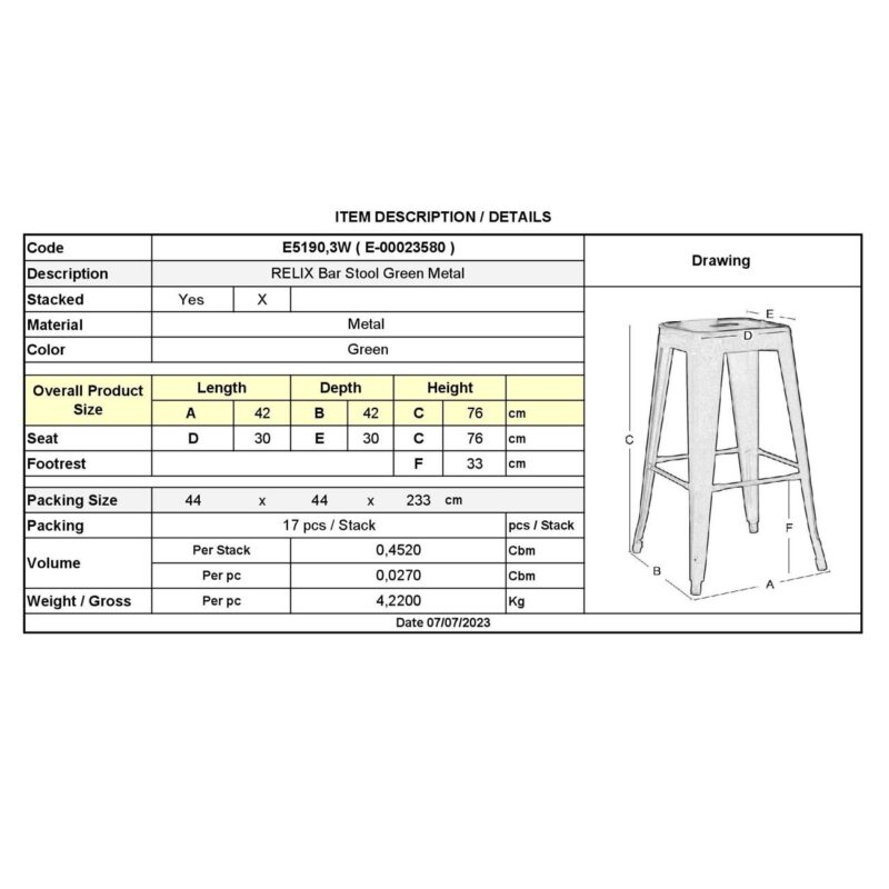 Бар стол, RELIх, Зелен, Метал, 42х42х76см.