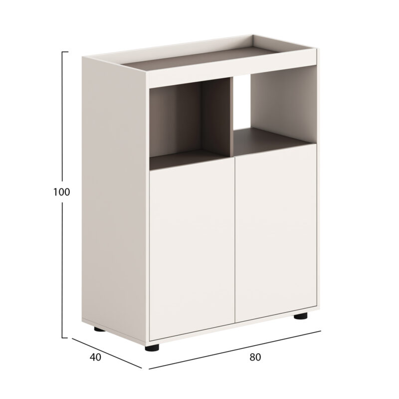 Шкаф / Библиотека Къса серия NEWLINE – Кремаво бяло и Светлокафяво