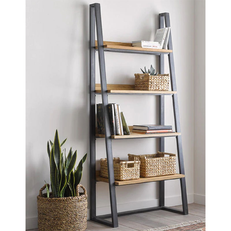 Метална рамка в черен цвят, рафтове от ПДЧ с меламиново покритие в дъбов цвят
