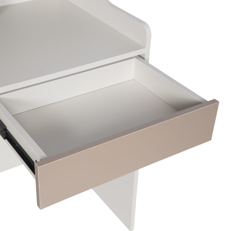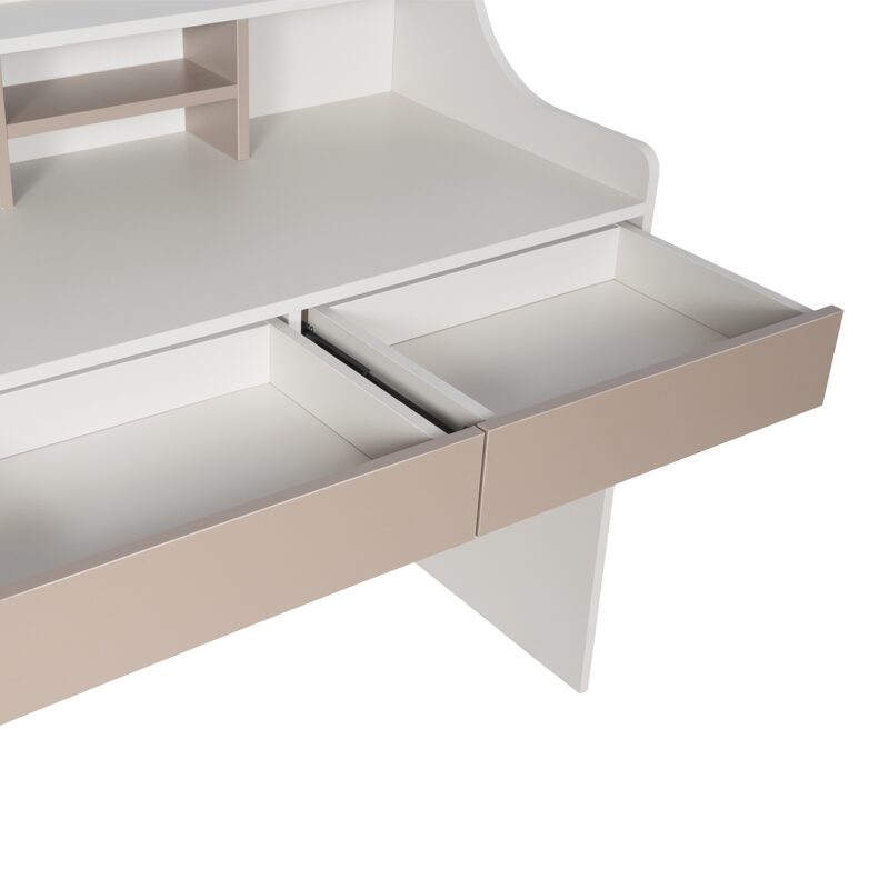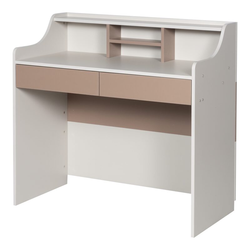 Бюро CORON е идеалният избор за организиране на детската стая или домашния офис, предлагайки стил и функционалност. С две практични чекмеджета и горен рафт с разделения, лесно ще съхранявате учебни и творчески материали. Изработено от висококачествено ПДЧ с меламиново покритие, това бюро е здраво и устойчиво. Разгледайте таблицата за размери и характеристики в секцията “Допълнителна информация”.