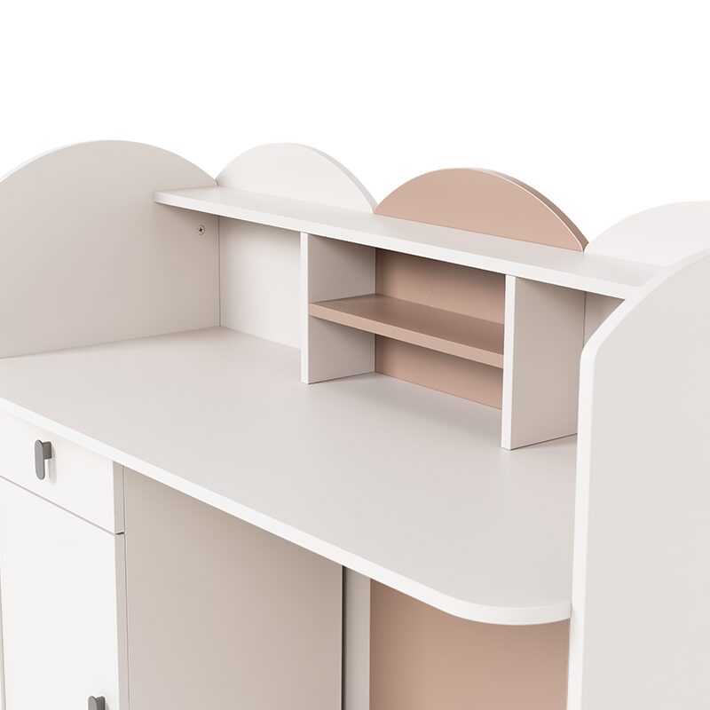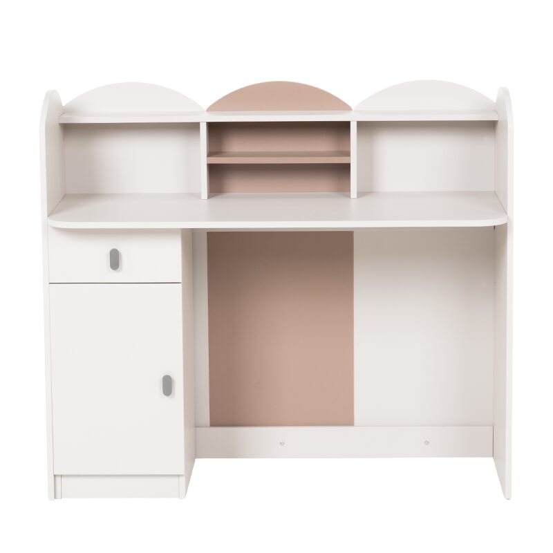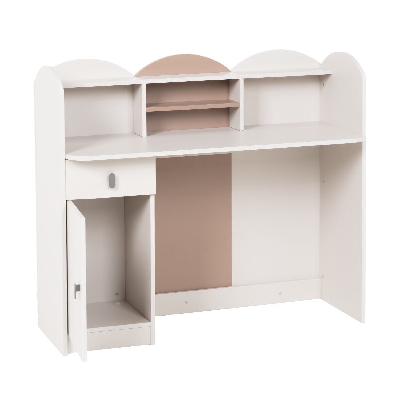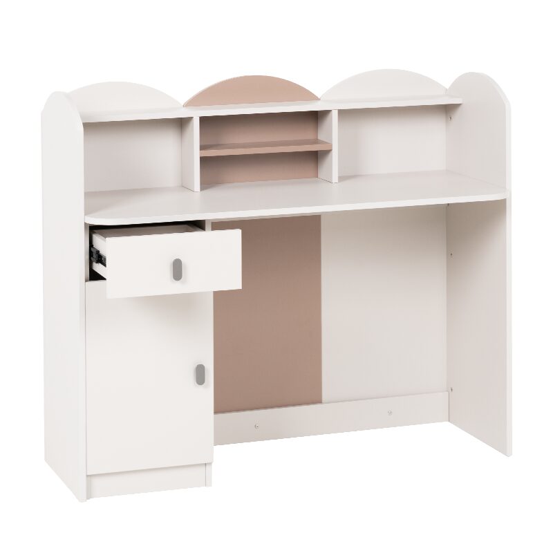 Бюро Pasig е идеалното решение за организиране на детска или тийнейджърска стая, съчетавайки стил и функционалност. Със своите заоблени линии и множество ниши и рафтове, бюрото осигурява достатъчно място за книги и аксесоари. Изработено от висококачествени ПДЧ и меламин, то предлага здравина и дълготрайност. Цветният панел добавя хармония към съвременния дизайн.