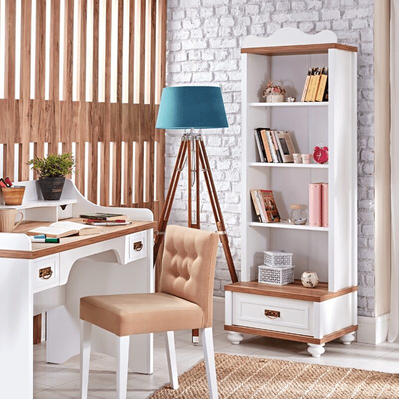 Детската етажерка TIFFANY е перфектното решение за организиране на детската стая с елегантен винтидж стил. Изработена от качествени ПДЧ материали, етажерката предлага стабилни рафтове и функционално чекмедже с плавна релсова система. Месинговата дръжка и ABS крака добавят устойчивост и улесняват почистването. Идеална за съхранение на книги и играчки, тя е практичен и стилен избор за всяка детска стая.