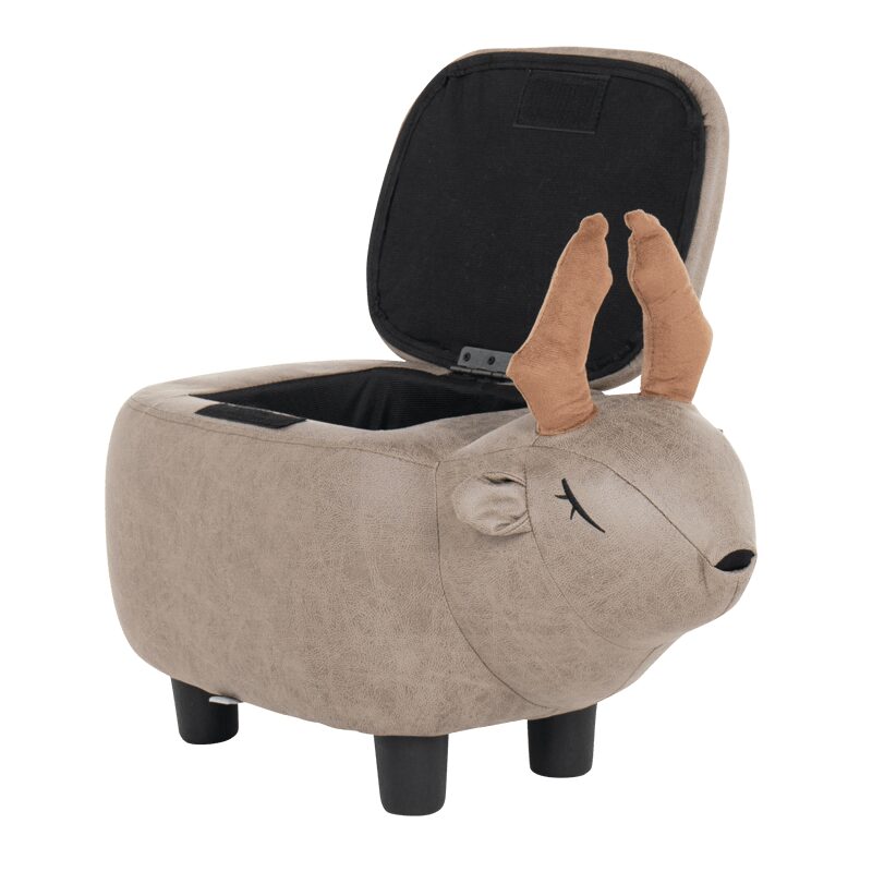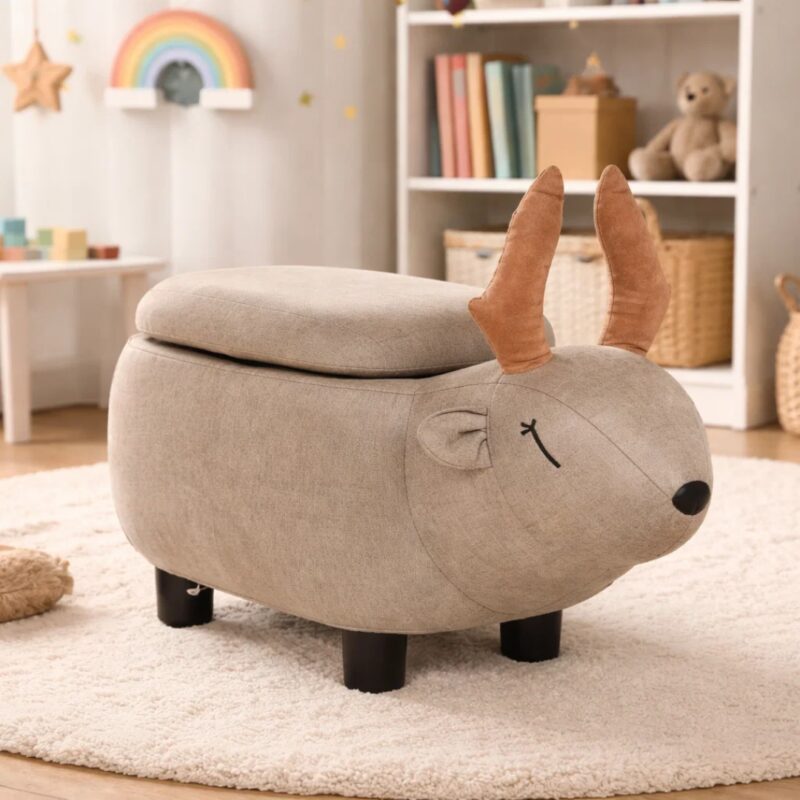 Тази детска табуретка с ракла, оформена като елен, е перфектното решение за организиране на детската стая. Осигурява комфортно място за сядане и просторна ракла за съхранение на играчки и аксесоари. Изработена от висококачествена мека дамаска и здрави PVC крака, тя съчетава стил и издръжливост. Идеална за всеки, който търси практични и забавни детски мебели.