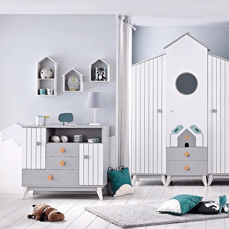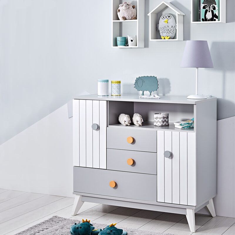 Детският скрин BIRD HOUSE предлага изключително удобство и функционалност за съхранение на вещи и играчки. С просторни чекмеджета и рафтове, изработени от висококачествено ПДЧ, той е идеален за детската стая. Безшумните вратички и регулируемите рафтове с товароносимост до 25 кг осигуряват безопасност и гъвкавост. Сивите, белите и оранжевите цветове създават хармонична атмосфера, а високите крака улесняват почистването.