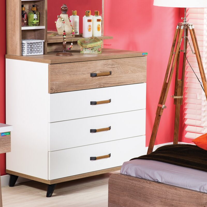 Детският скрин NATURA е идеалното решение за организиране на юношеската стая с неговите четири просторни чекмеджета, които осигуряват изобилие от място за дрехи и аксесоари. Изработен от висококачествено ПДЧ с дебелина 18 мм, този скрин съчетава практичност и елегантен дизайн. Разгледайте допълнителната информация за размерите и характеристиките на модела.