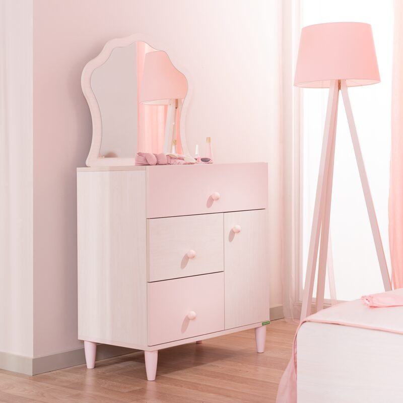 Детският скрин POLLINA е перфектното решение за организация в детската стая, съчетавайки стил и функционалност. Изработен от висококачествено ПДЧ, този скрин предлага три чекмеджета и врата с плавно затваряне, осигурявайки безшумна употреба и стабилност до 25 кг. Свежите пастелни цветове и меките форми създават уютна атмосфера, идеална за всяко дете.