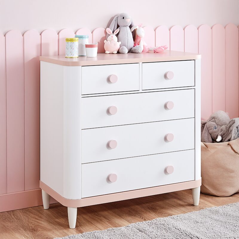 Детският скрин за дрехи LIMA предлага идеално решение за организация с пет просторни чекмеджета, които лесно побират детски дрехи и аксесоари. Изработен от висококачествено ПДЧ, скринът комбинира стил и издръжливост, като всяко чекмедже издържа до 25 кг. Системата за плавно затваряне гарантира тиха и безопасна употреба. Разгледайте допълнителната информация за размери и характеристики.