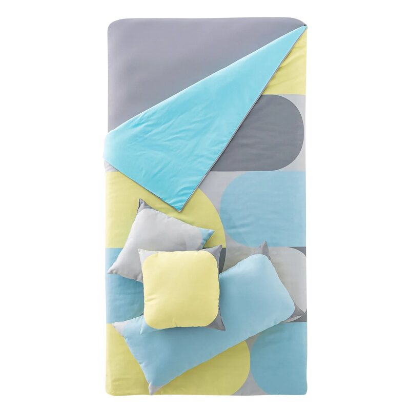 Детският спален комплект Minia осигурява уют и стил в детската стая, съчетавайки комфорт и безопасност с антибактериални и антиалергични материали. Изработен от 100% памук, комплектът включва възглавници, шалте и чаршаф, идеални за легла 80×180 см. Перфектен избор за здравословен сън, този комплект е лесен за поддръжка и предлага дълготрайно качество.