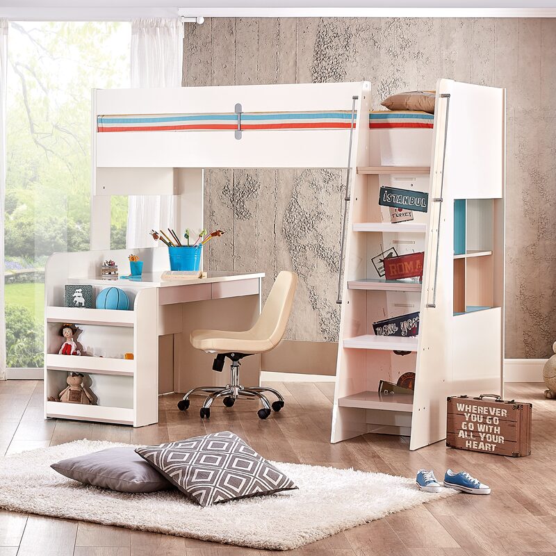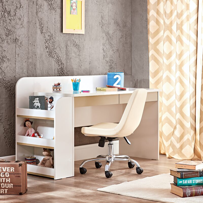 Детското бюро JOYIN предлага идеалната среда за учене и творчество, съчетавайки функционалност и стил. С широк плот и вградена странична етажерка с три отделения, то осигурява достатъчно място за учебни материали. Изработено от висококачествено ПДЧ, бюрото включва и USB станция за лесно зареждане на устройства. Перфектен избор за организирана и удобна учебна зона.