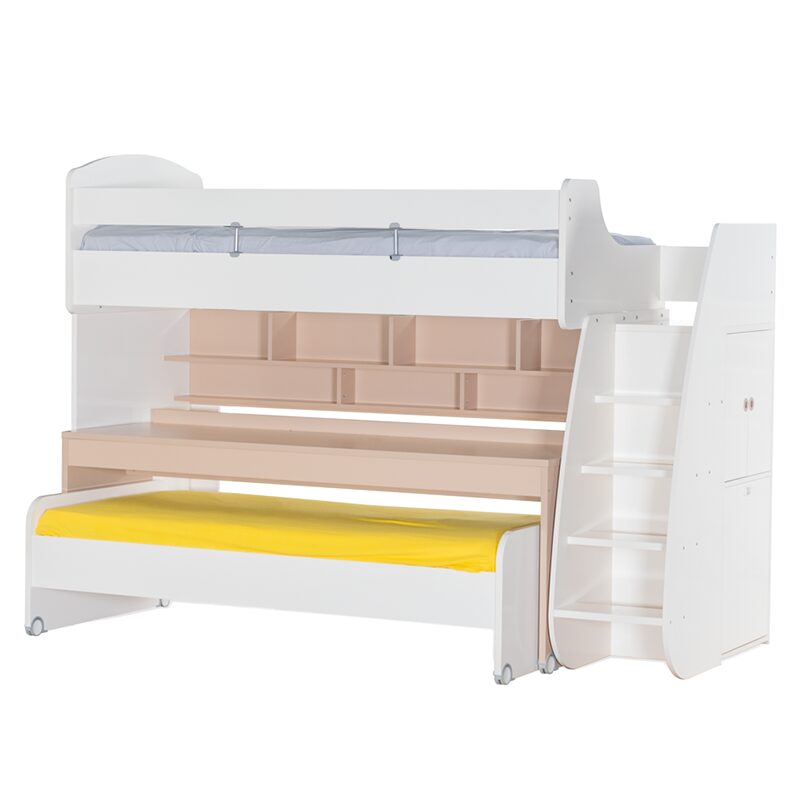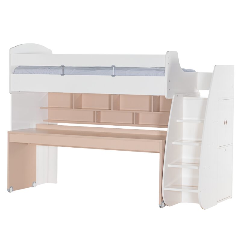 Детско легло JOYIN, с размери 90×200 см, предлага идеалното съчетание от безопасност и комфорт за вашето дете. Изработено от висококачествено ПДЧ с дебелина 18 мм, леглото включва подматрачна рамка, практична етажерка и две шкафчета. Със стълба и предпазна преграда, това легло гарантира надеждност и функционалност. Открийте повече за размерите и характеристиките в допълнителната информация.