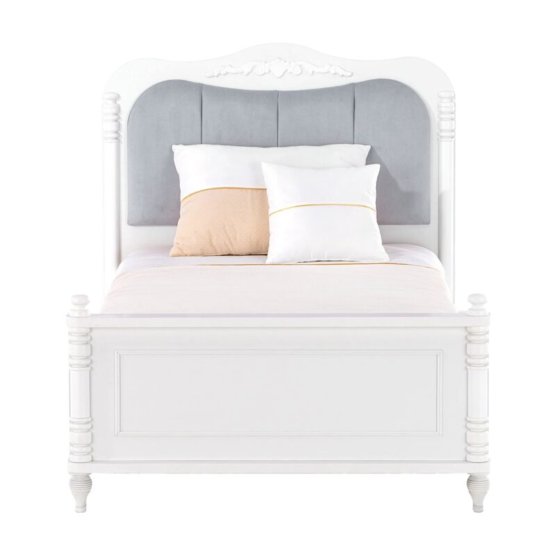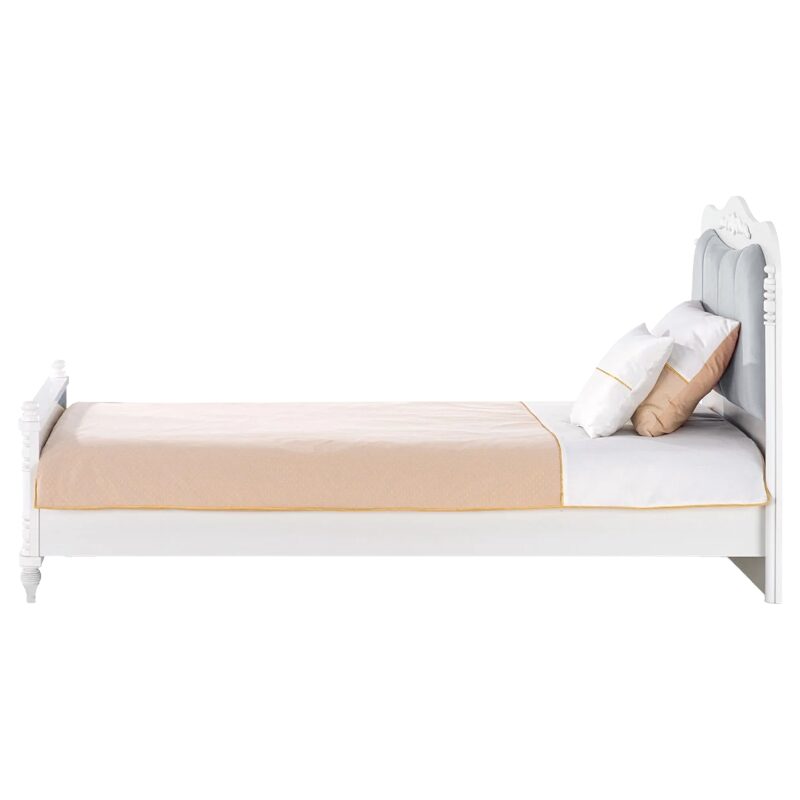 Детското легло NIL 100 x 200 създава магическа атмосфера в детската стая, превръщайки я в истински дворец за малки принцове и принцеси. Изработено от висококачествени материали като МДФ и 18мм ПДЧ, леглото съчетава издръжливост и елегантност. Нежните бяло-сиви нюанси добавят уют и стил. Разгледайте пълната информация за размери и характеристики в секция “Допълнителна информация”.