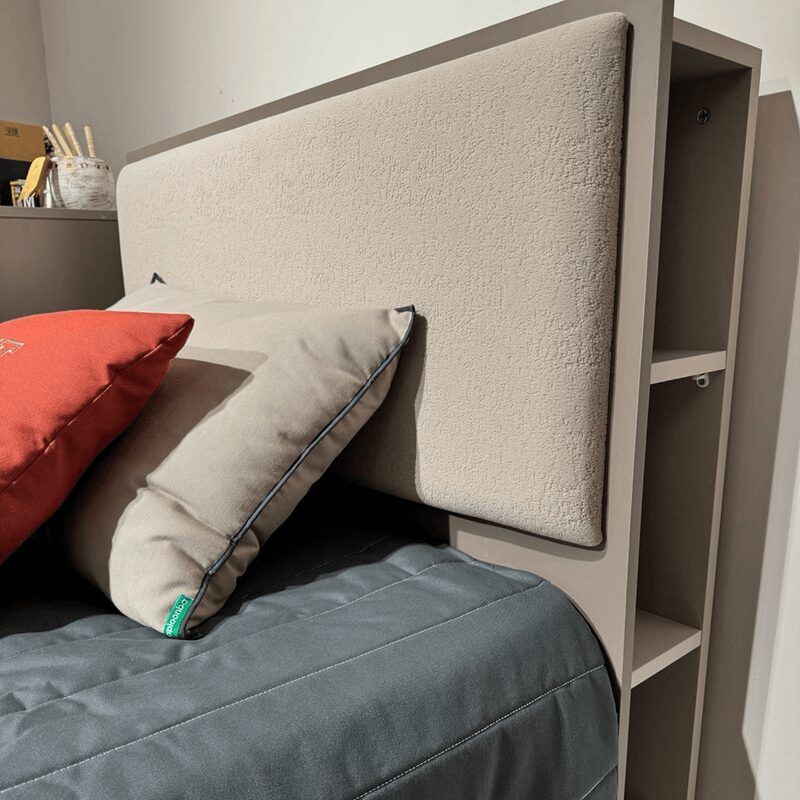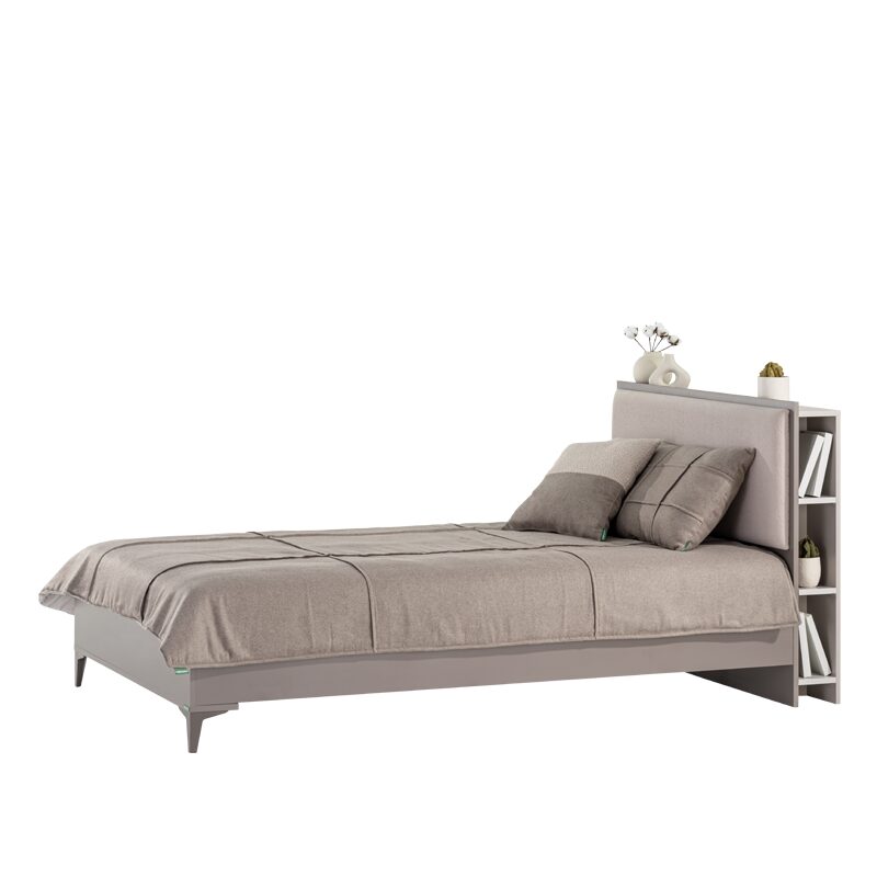 Детско легло RIGA 100 x 200 предлага перфектния баланс между комфорт и стил, създавайки уютна атмосфера в детската стая. Изработено от висококачествен ПДЧ, леглото е стабилно и сигурно, с товароподемност до 130 кг. Тапицираната табла в земни тонове добавя практичност и естетика, предоставяйки място за нощни книги. Открийте повече в раздел “Допълнителна информация”.