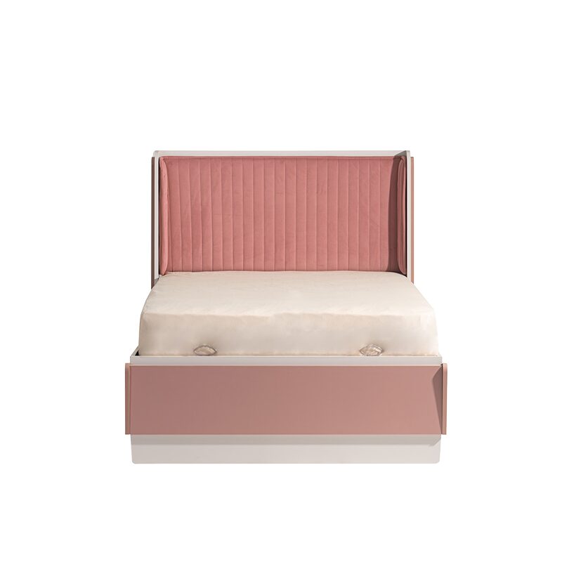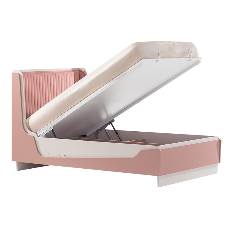 Детското легло с ракла ESTELLA 120 x 200 осигурява изключителен комфорт и практичност с елегантен дизайн. Високата табла с мека кадифена тапицерия и капитонирани детайли придават стил, а заоблените ъгли подчертават модерния вид. Изработено от висококачествено ПДЧ, леглото предлага здравина и стабилност. Вграденият повдигащ механизъм с безопасни амортисьори разкрива обширно място за съхранение.