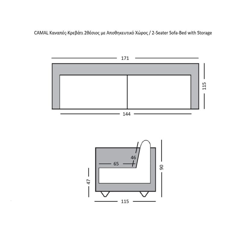 Диван-легло Camal с място за съхранение – 2-местен / Светло сив плат