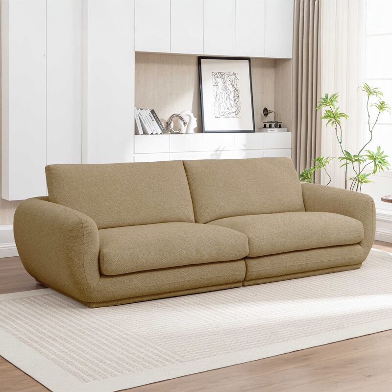 Насладете се на съвременен комфорт с диван Forde, идеален за трима или четирима души. Изработен от издръжлива дамаска в елегантно шампанско, светло сиво или свежо оранжево, този диван съчетава стил и функционалност. Заоблените форми и широките възглавници осигуряват уют, докато гъшият пух и покет пружините гарантират дълготрайно удобство. Изберете качество и стил за вашия дом.