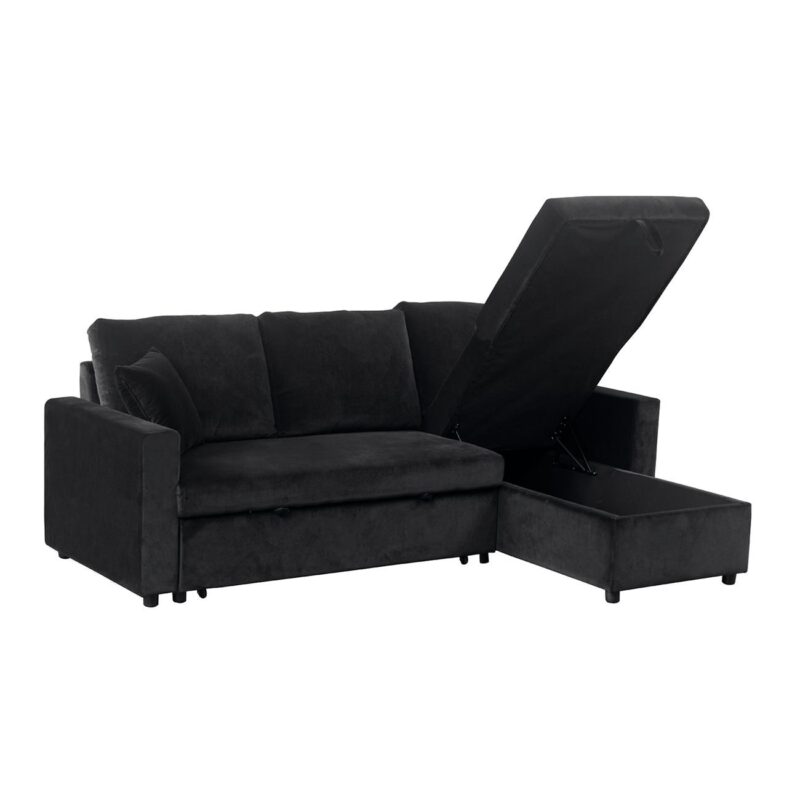 Ъглов диван с място за съхранение MONTREAL – ЧЕРЕН