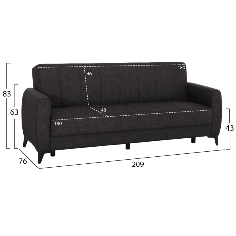Диван, NIKKO, Сив, Текстил, 209х76х83см.