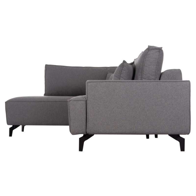 Красив и практичен сиво тапициран диван с високи черни полиетиленови крака