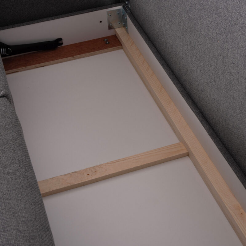 Превръща се в легло с допълнителен крак за стабилност и скрито място за съхранение
