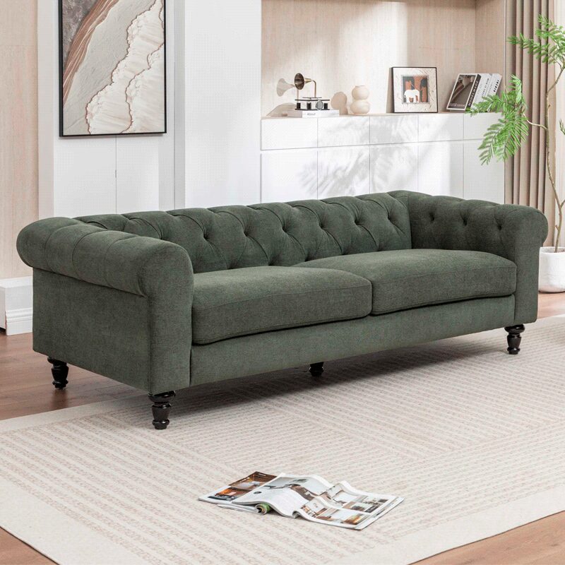 Насладете се на несравним комфорт и елегантност с диван тройка Chester, който придава луксозен акцент на вашия дом. Изработен от висококачествени материали, този диван съчетава издръжлива дамаска в топъл нюанс, капитонирани детайли и заоблени подлакътници. Здравата дървена конструкция и пълнежът от пенополиуретан и покет пружини гарантират стабилност и удобство. Открийте повече в раздела “Допълнителна информация”.