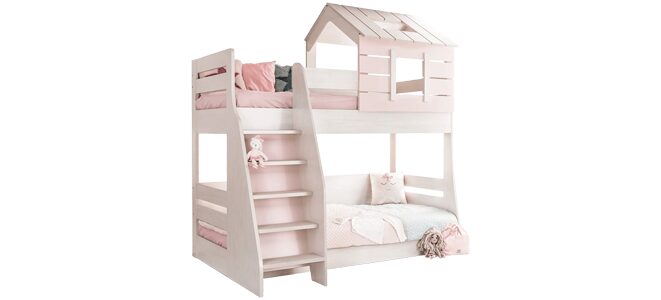 Двуетажното детско легло Pink House е перфектното решение за спестяване на пространство и добавяне на забавление в детската стая. Изработено от висококачествено ПДЧ, леглото предлага горен етаж с очарователен дизайн на къща и удобно долно легло за спокоен сън. Изкачването по стълбите е истинско приключение. Открийте повече за размерите и характеристиките в раздела “Допълнителна информация”.