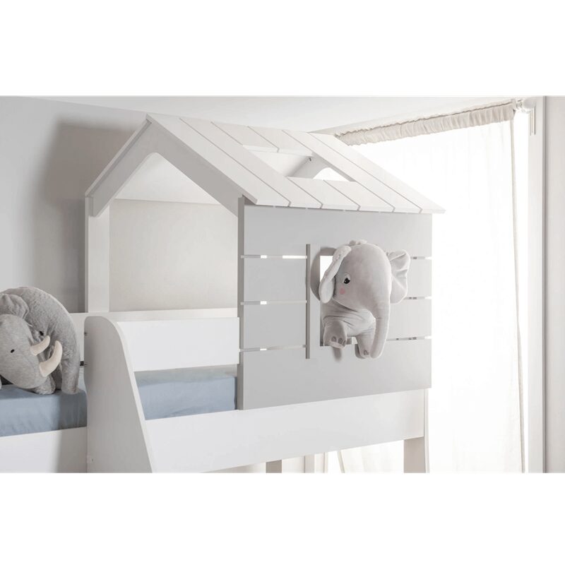 Двуетажното детско легло WHITE HOUSE е идеалното решение за семейства с повече деца, осигурявайки оптимално използване на пространството. Със своя интелигентен дизайн, включващ уютна къщичка от ПДЧ на горния етаж и удобно легло на долния, това легло предлага комфорт и забавление. Перфектно за детска стая, то гарантира здравословен сън и повече място за игра.