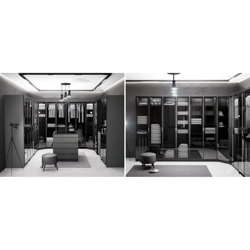 Двукрилният гардероб YORK предлага идеалното съчетание от стил и функционалност, изработен от висококачествено ПДЧ с дебелина 18 мм. С четири рафта и пет чекмеджета, той е идеален за съхранение на обувки и аксесоари. Вграденото LED осветление с дистанционно управление и вентилационните отвори осигуряват комфорт и персонализирана атмосфера. Модерните врати от опушено стъкло с огледален ефект се предлагат отделно.