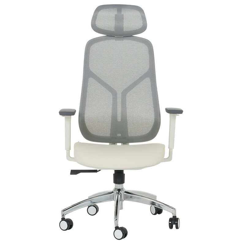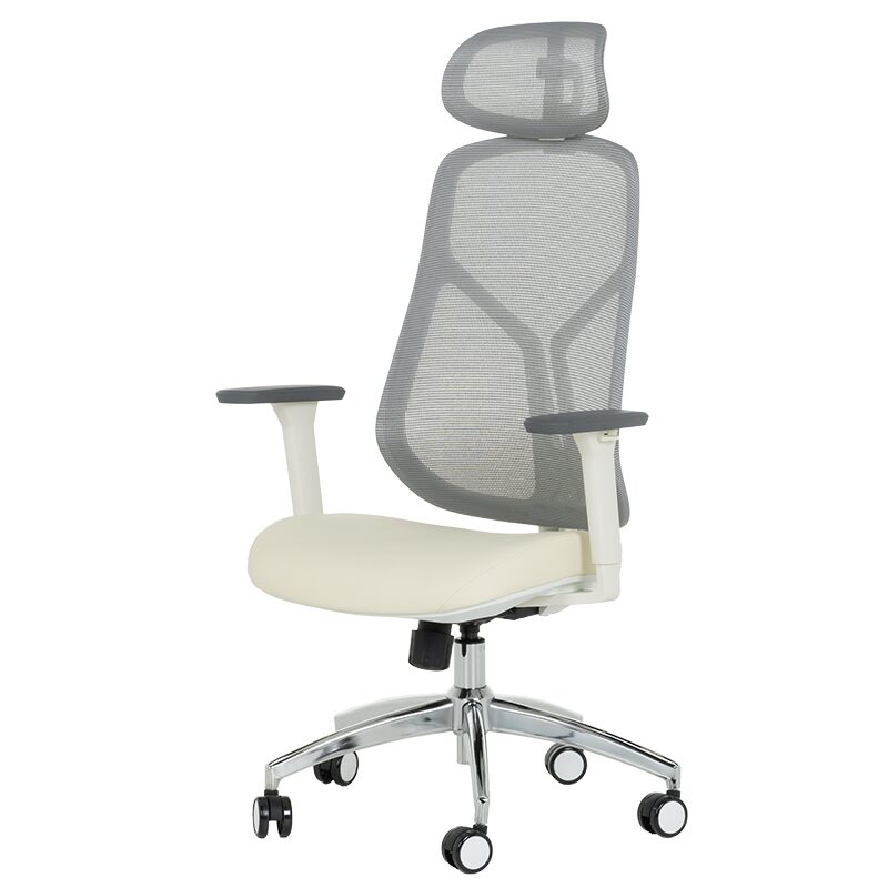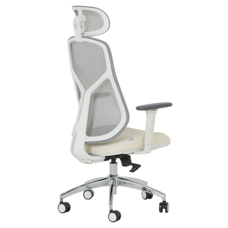 Ергономичен стол 7901 W еко кожа – сив-шампанско