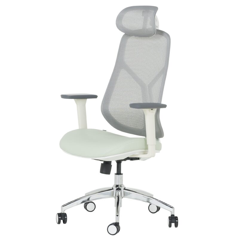 Ергономичен стол 7901 W еко кожа – сив-светлозелен