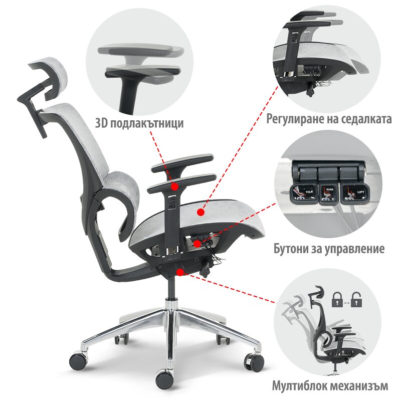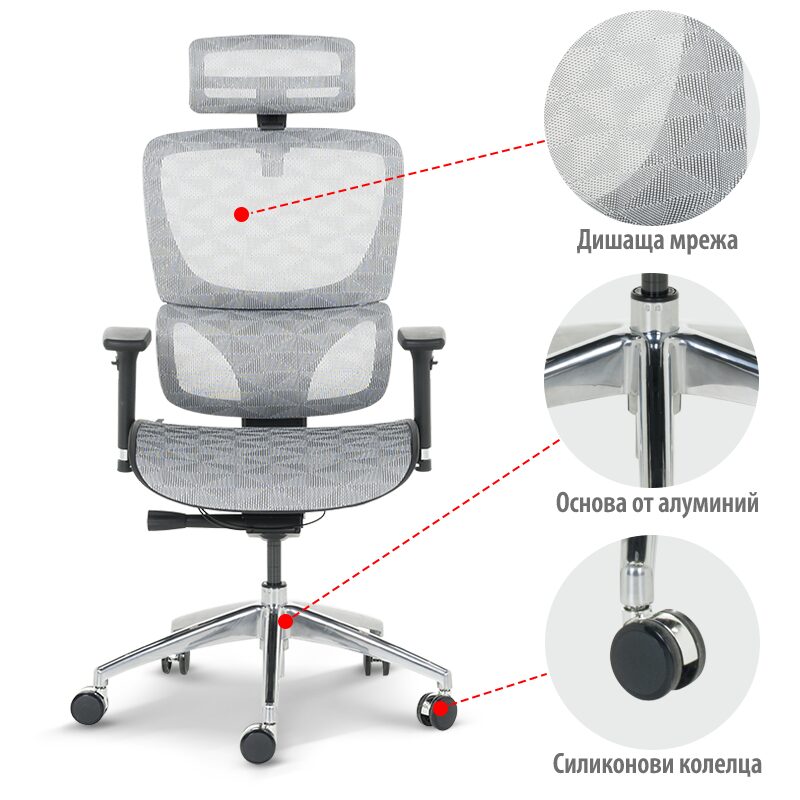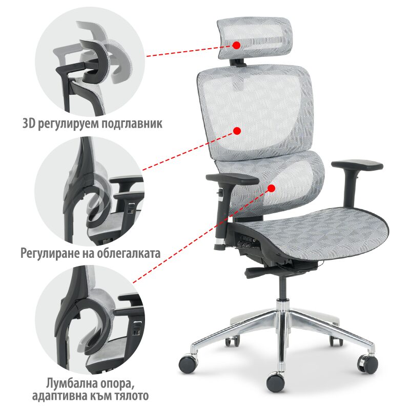Ергономичният стол DELTA предлага ненадминат комфорт и модерен стил за вашия дом или офис. С 3D подглавник, 3D подлакътници и лумбална опора, този стол е идеалният избор за всеки, който цени качеството и ефективността. Изработен от дишаща мрежа и здрава алуминиева основа със силиконови колелца, DELTA осигурява стабилност и гъвкавост. Открийте повече в раздел “Допълнителна информация”.