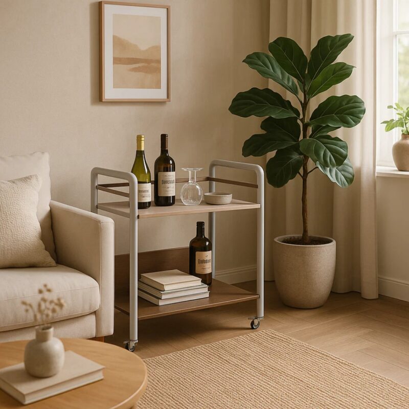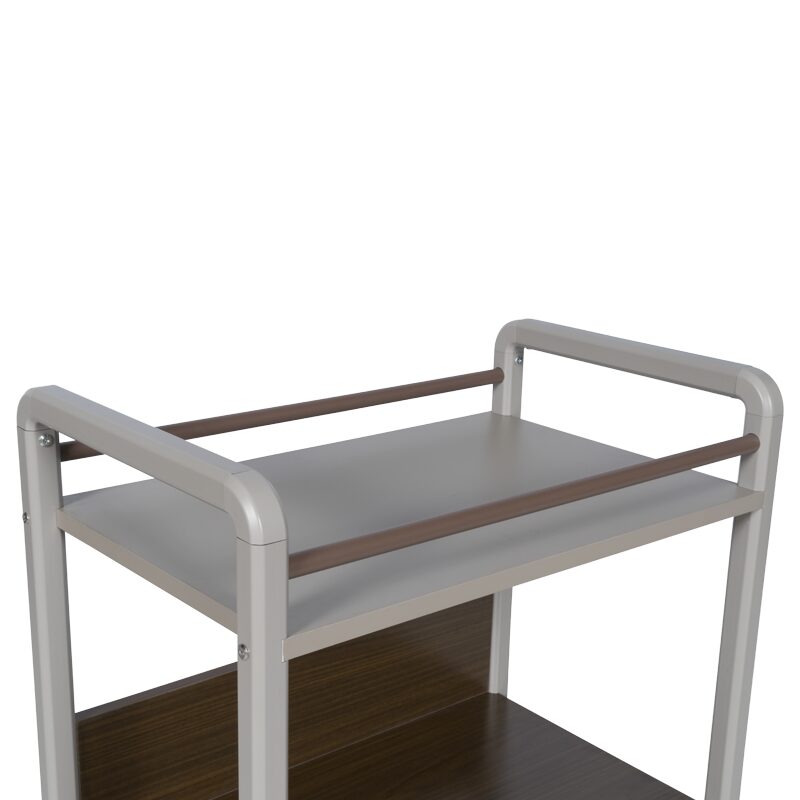 Етажерката с колела PANGLAO е идеалното решение за организиране на вашето пространство, съчетавайки функционалност и елегантен дизайн. Изработена от висококачествени ПДЧ и меламин, с праховобоядисан метал за допълнителна здравина, тя предлага издръжливост и стабилност. Мобилната конструкция с колелца и механизъм за застопоряване я прави лесна за преместване, а двата рафта осигуряват практично съхранение на офис консумативи или декорации. Подходяща за дом или офис, тази етажерка е перфектният избор за стил и удобство.