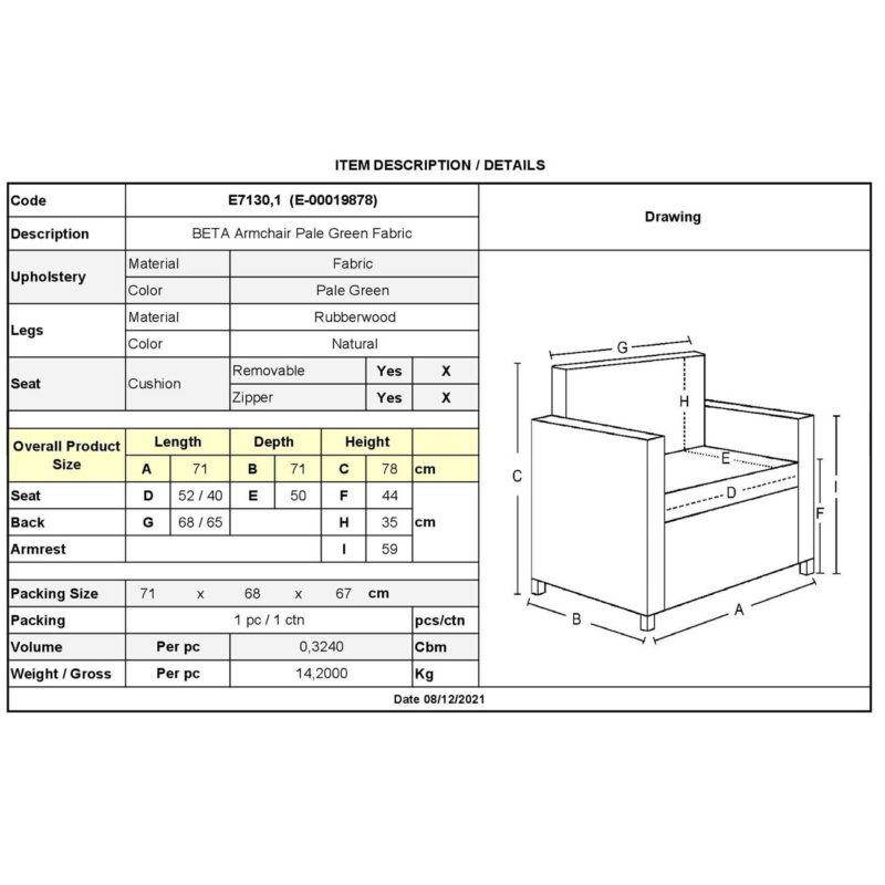 Крака от каучуково дърво в естествен цвят, Тапицерия от бледо зелена тъкан