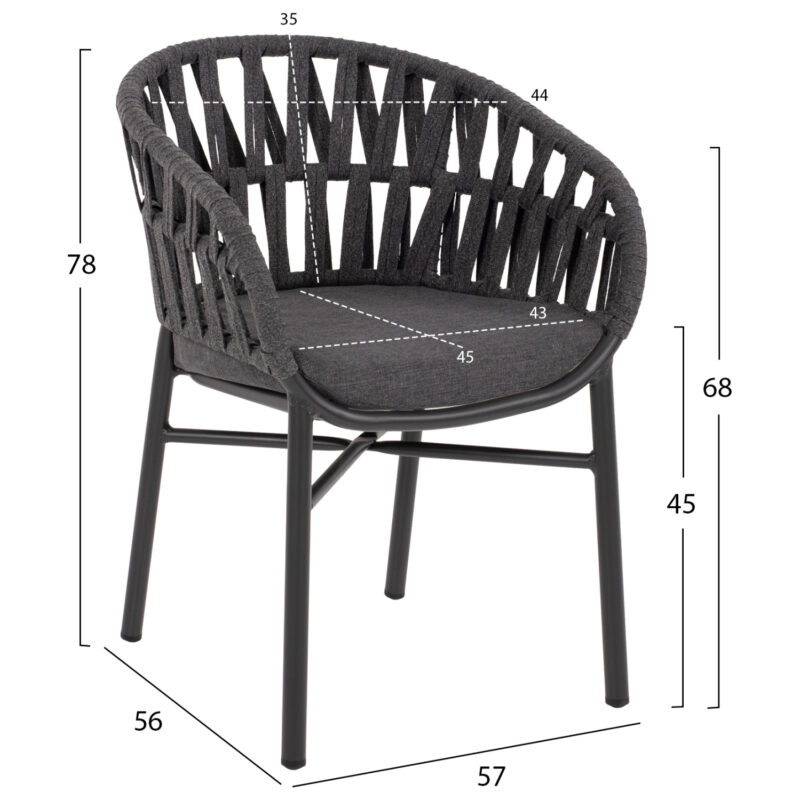 Фотьойл, HM5857.01, Сив, Въже, 57х56х78см.