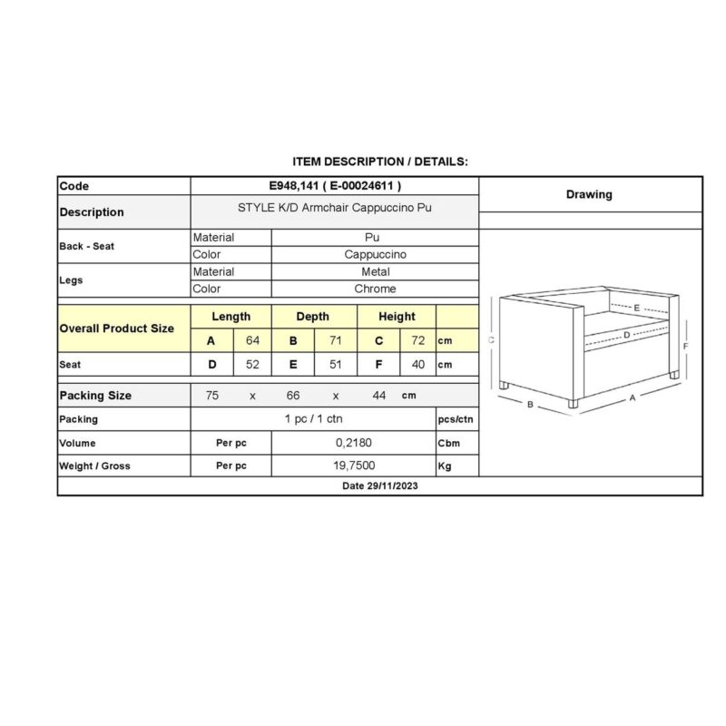 Метални хромирани крака, тапицерия от PU в цвят капучино