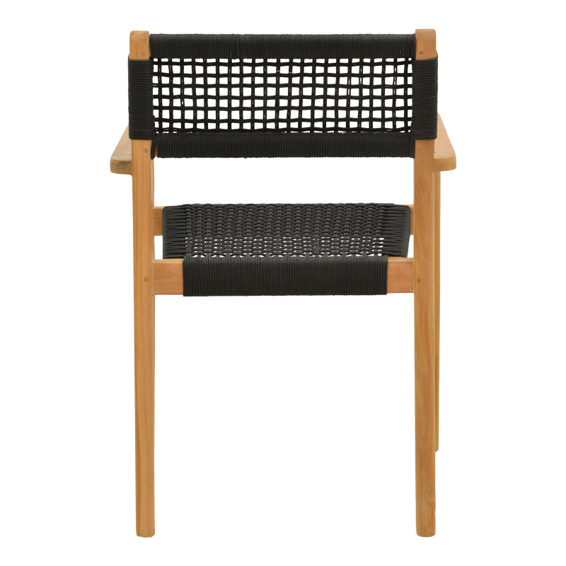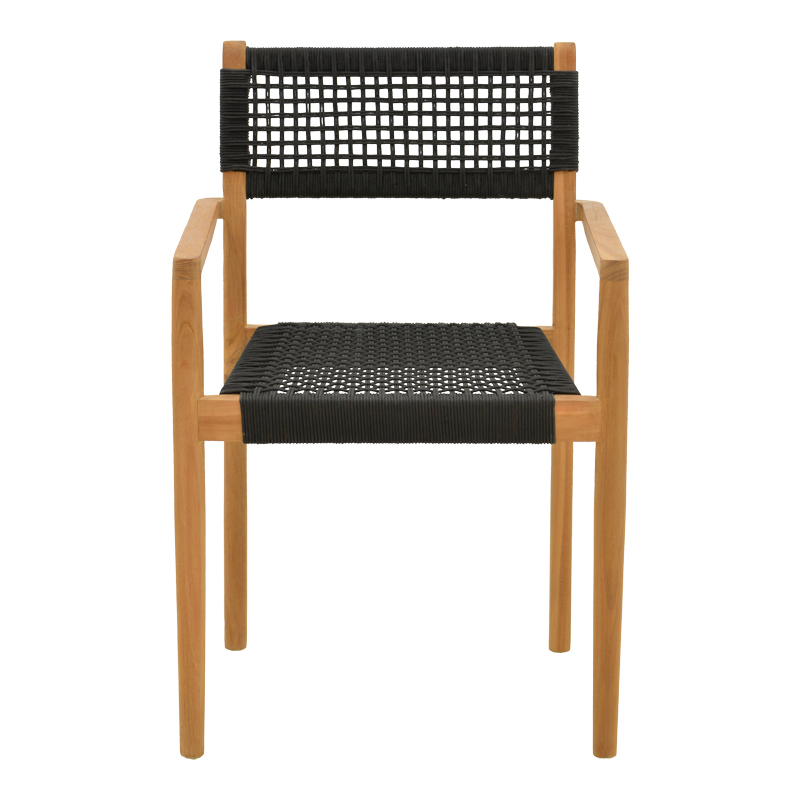 Рамка от висококачествено тиково дърво; седалка и облегалка от черно PE въже