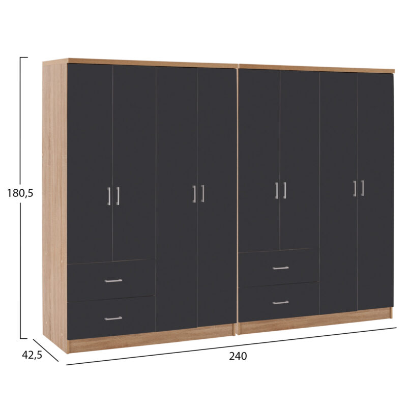 Гардероб от меламин с 8 врати в цвят СОНАМА-ТЪМНО СИВО