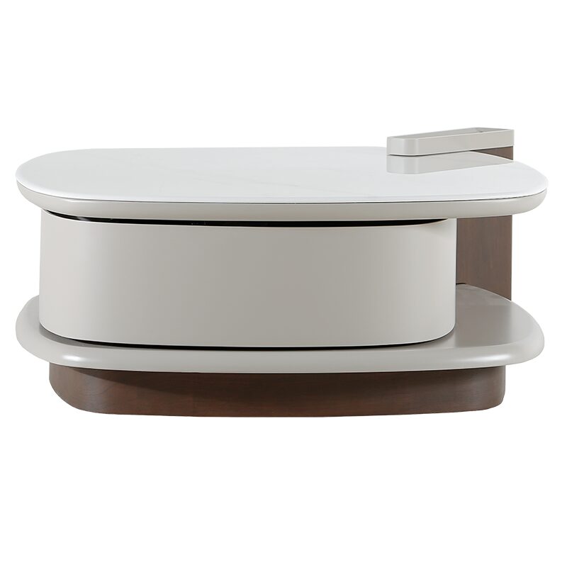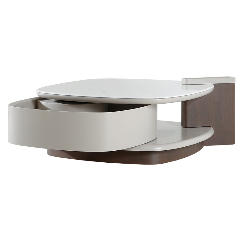 Добавете изискан акцент към вашата модерна дневна с холната маса ALDO. С артистичен дизайн и уникална геометрия, тя съчетава изтънчената визия на керамика с устойчивостта на MDF. Основата с дървесен ефект придава уют, а скритото чекмедже с плавно отваряне е практично и стилно решение. Перфектен избор за интериори, където стилът и функционалността са на първо място.