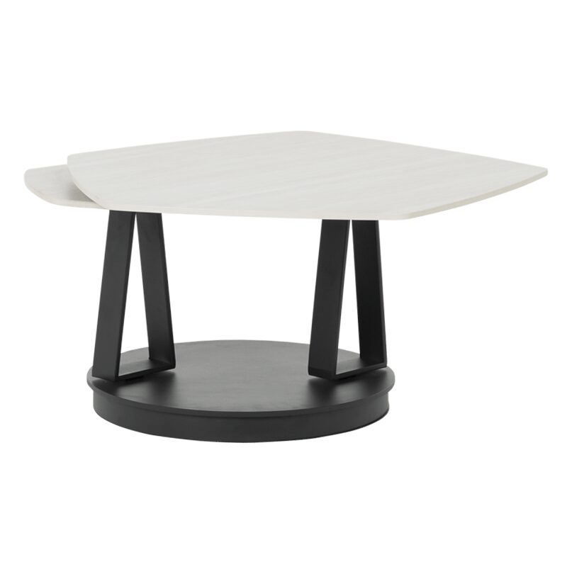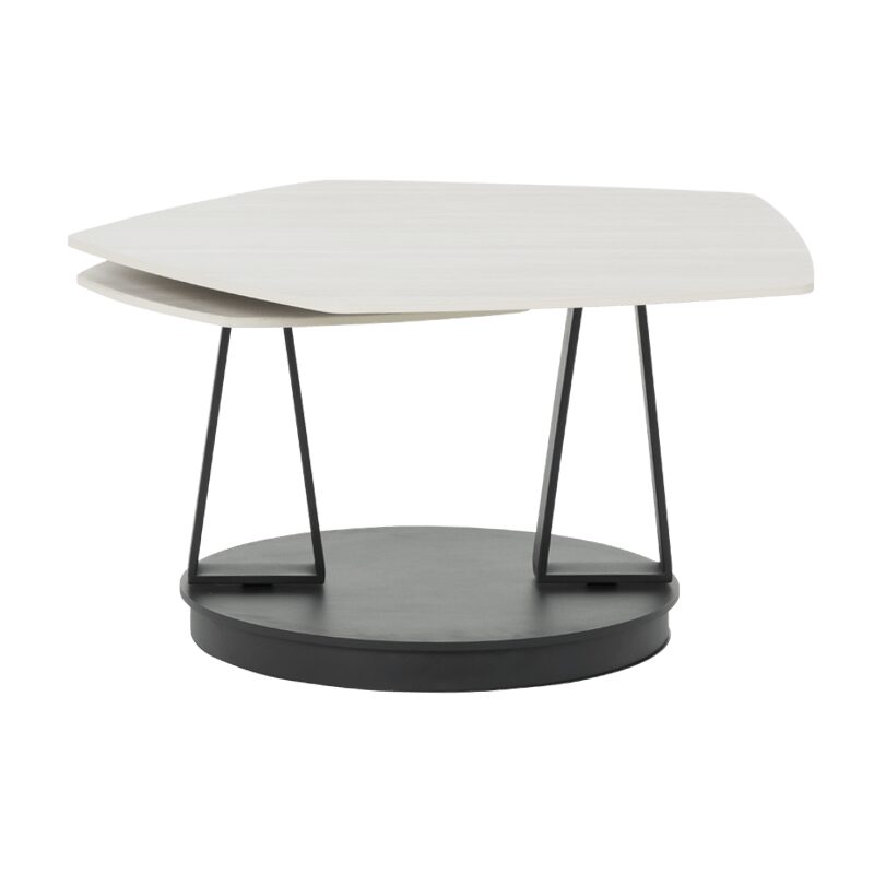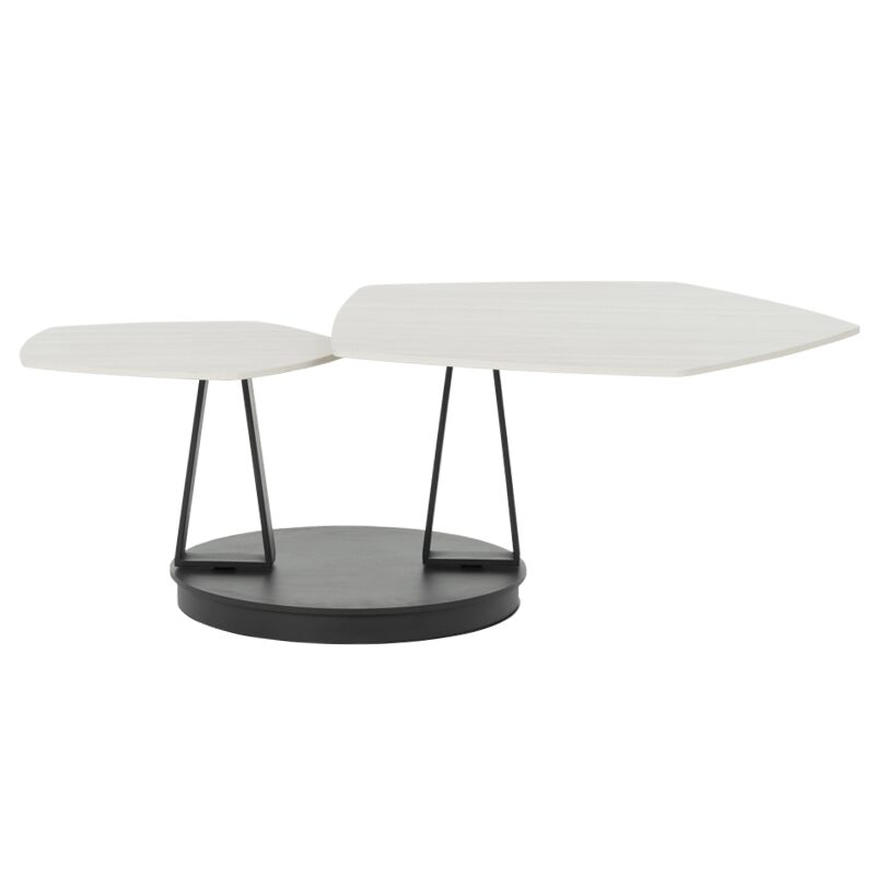 Комплект холни маси ORTIZ е идеалното решение за модерния дом, съчетавайки стил и функционалност. Изработени от висококачествена керамика в топъл кленов цвят и стабилна праховобоядисана метална основа, тези маси предлагат изтънчена елегантност. Нестандартната петоъгълна форма и иновативният механизъм за завъртане добавят динамика и гъвкавост към вашия интериор.