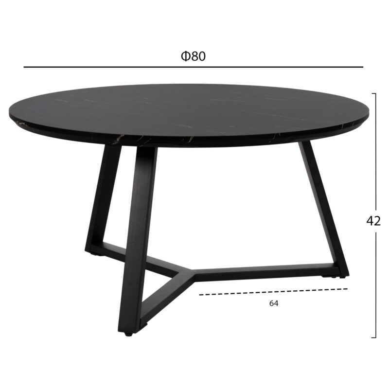• Голяма: Φ80x42H см, дебелина на плота: 3 см, разстояние между краката: 64×64 см