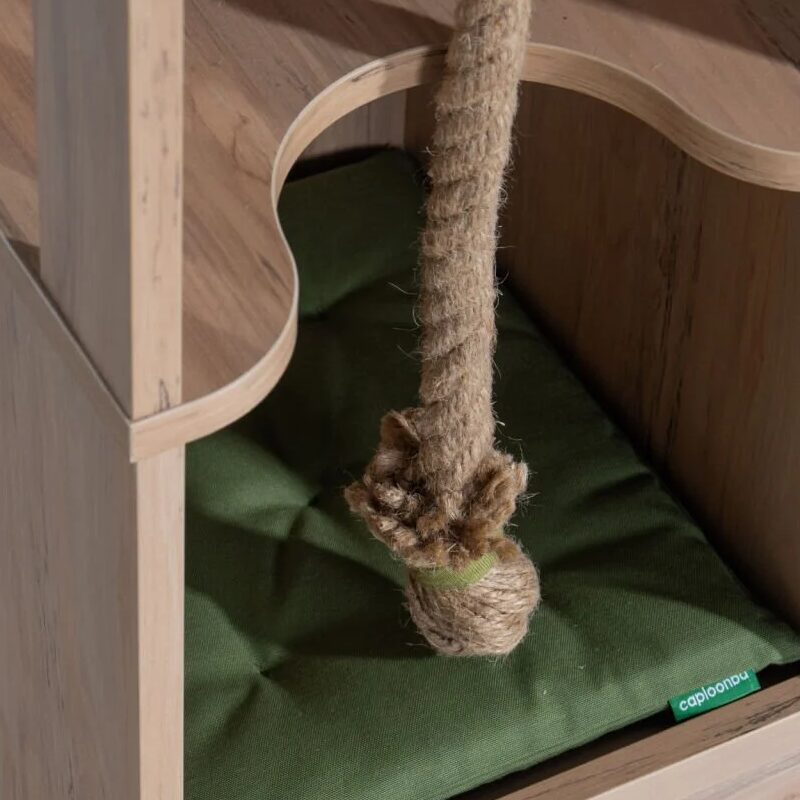 Къщичката MY HOUSE предлага върховен комфорт и забавление за вашите домашни любимци с иновативния си двуетажен дизайн. Изработена от висококачествено ПДЧ, тя включва меко легло за спокоен сън и горен плот за купички или аксесоари. Специално въже за острене на нокти предпазва мебелите, а модерната визия се вписва перфектно в интериора. Разгледайте детайлни размери и характеристики в раздела “Допълнителна информация”.