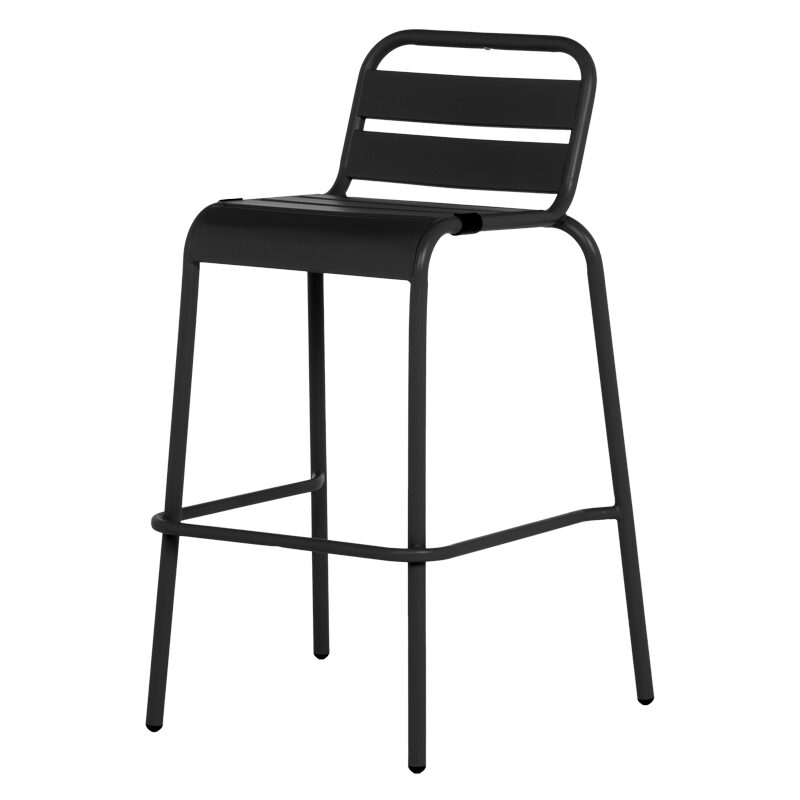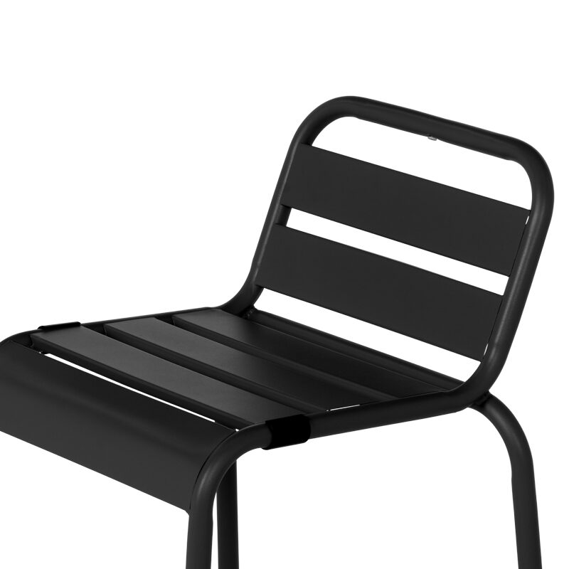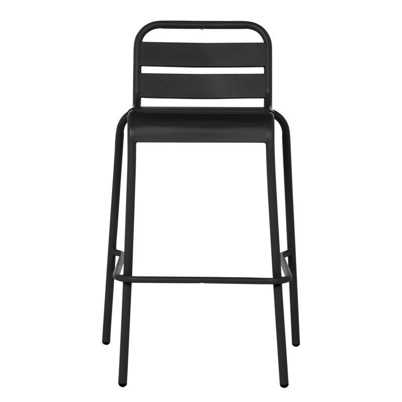 Кетъринг бар стол SHAKI е идеалният избор за стил и издръжливост на вашата тераса или градина. Създаден изцяло от метал с антикорозионно покритие, той осигурява устойчивост на атмосферни влияния и лесна поддръжка. Ергономичната облегалка и подкрачникът гарантират комфорт, а възможността за стифиране спестява място. Перфектно допълнение към всякакви външни зони на заведения.